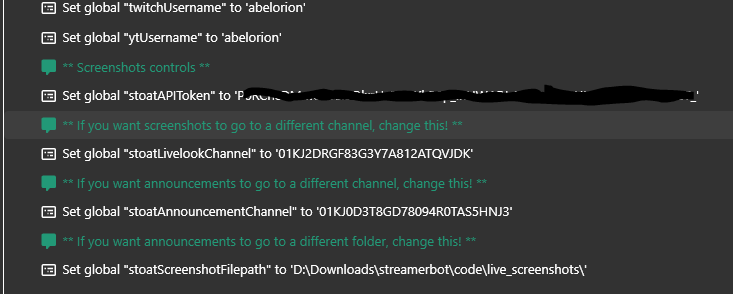 Once you’ve imported the code into streamer.bot you’ll need to update the variables in the “(Core) define variables” action