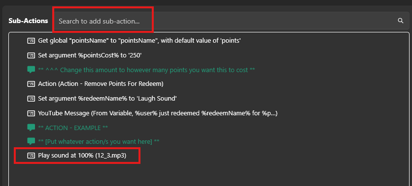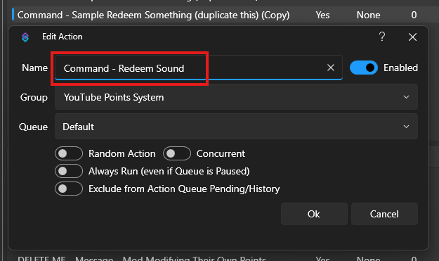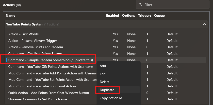 Duplicate the action “Command - Sample Redeem Something YT (duplicate this)”