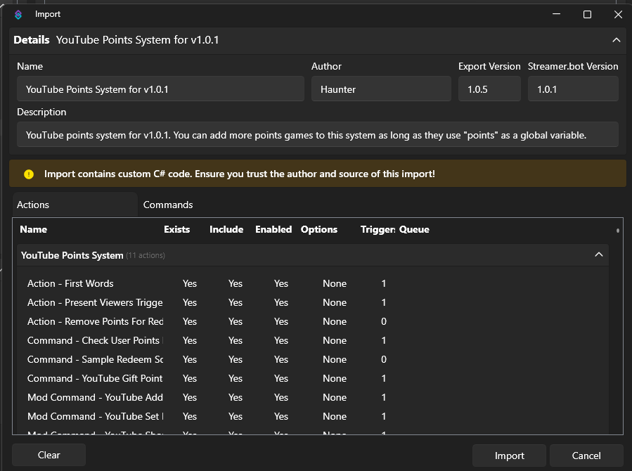 This is a points system for YouTube. Viewers will be able to accumulate points by chatting regularly and then redeem their points to trigger actions you create in Streamer.Bot. Updated for v1.0.1